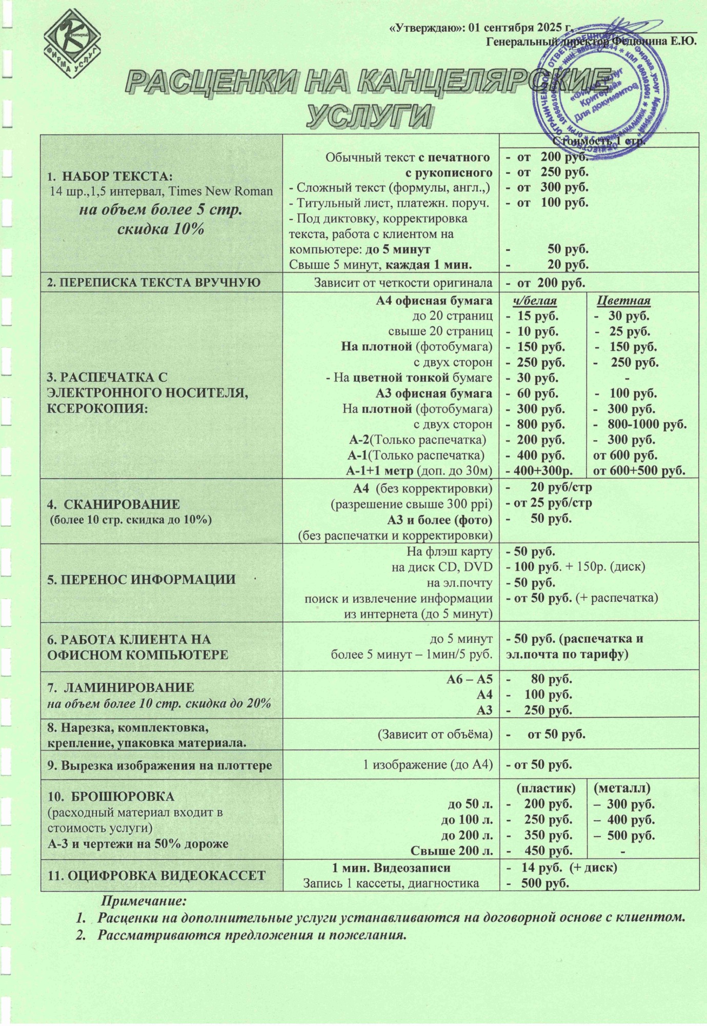 Канцелярские услуги